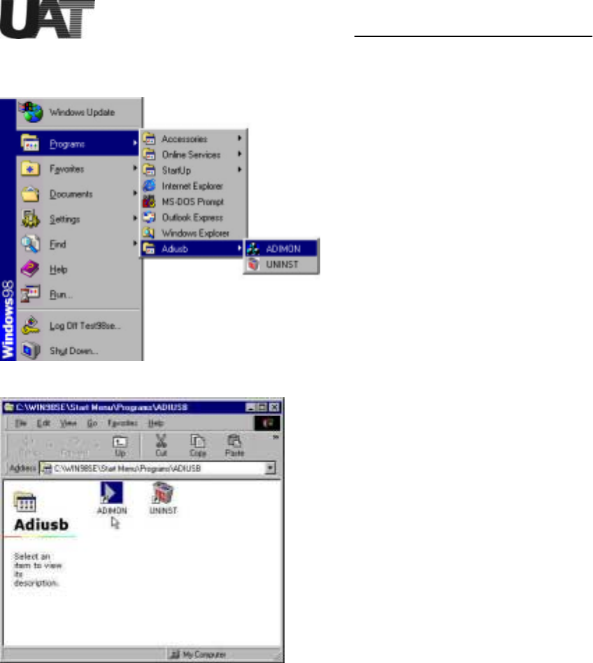 1. From Windows Start menu, choose Programs->Adiusb and click on “UNINST”. Click