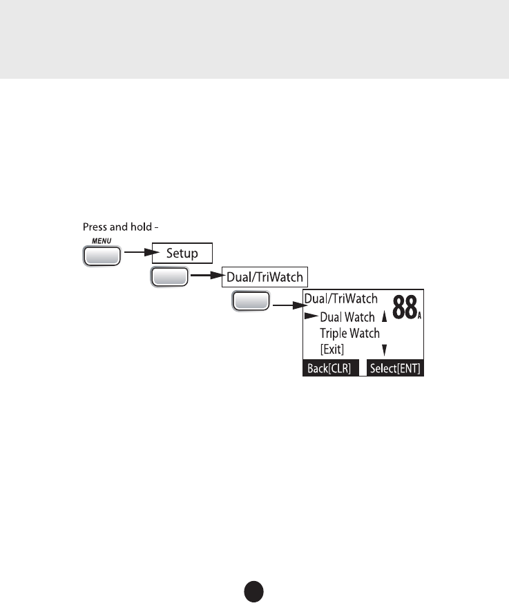 2. On the microphone, press the 16/9-TRI button to switch to Channel 16 (156.8 MHz). (If the corner of the display does not show