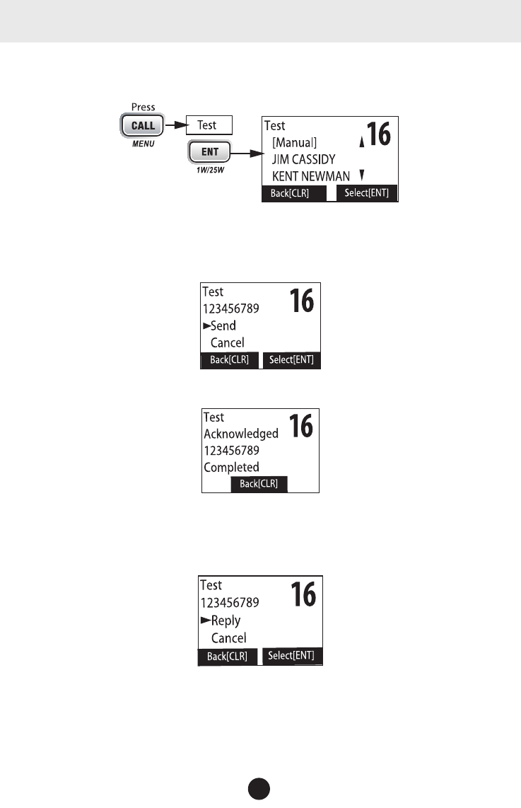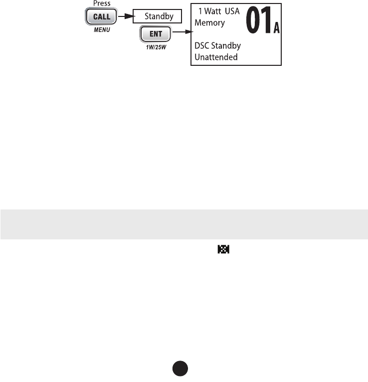 2. On the microphone, press the 16/9-TRI button to switch to Channel 16 (156.8 MHz). (If the corner of the display does not show