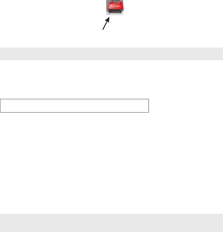 Lift the red cover. Press and hold the DISTRESS button for three seconds. Your radio transmits your boat’s location every few minutes