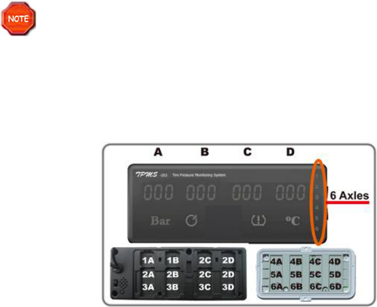 respectively. The axle indicator “123456” on the display matches the six axles. For example,