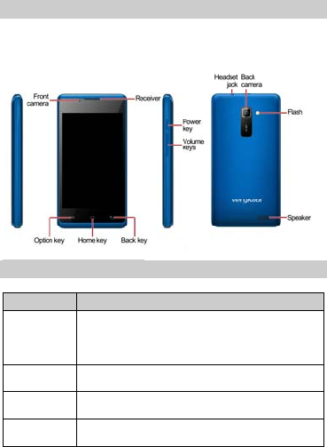 Power Key Long press the key to turn on the phone.