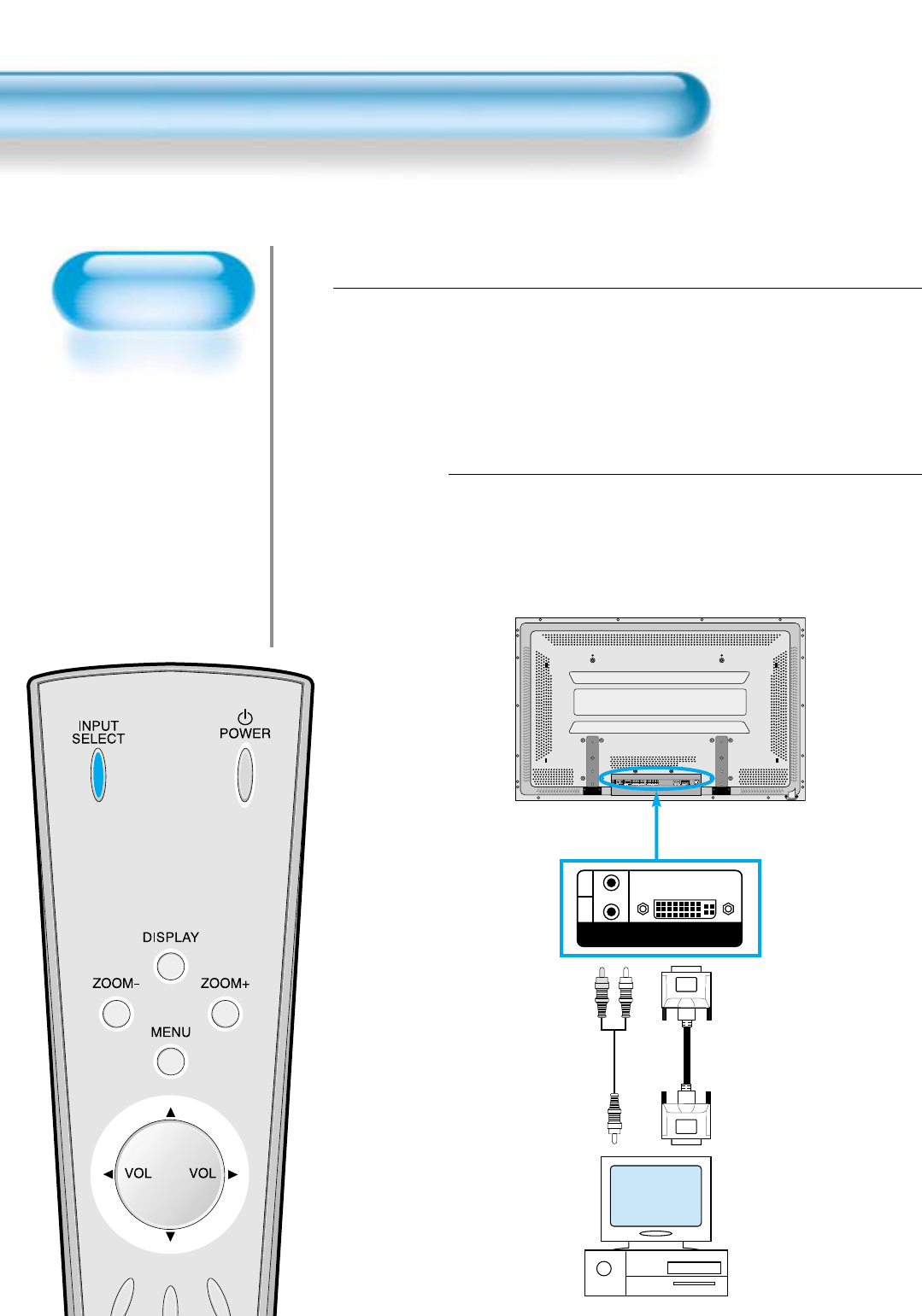 When connection to PC, you can receive DVI digial signal as well as former analog signal by using DVI