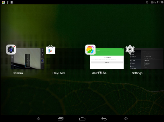 After turning on the device, desktop displays with shortcut icons and arrow panel at the right side