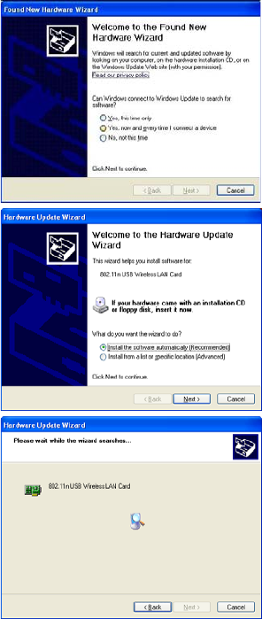 the Found New Hardware screen to display and click “Cancel”; otherwise,