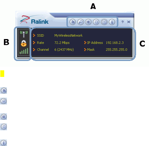 The Ralink Utility lets you connect to a wireless network and the Internet, set
