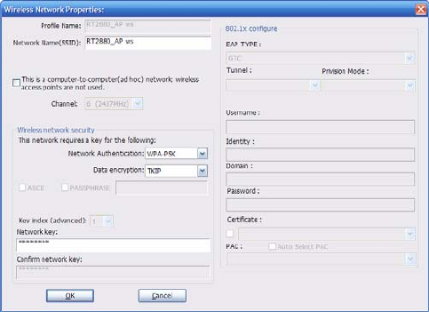 encryption type, as well (AES or TKIP). These settings depend on how the