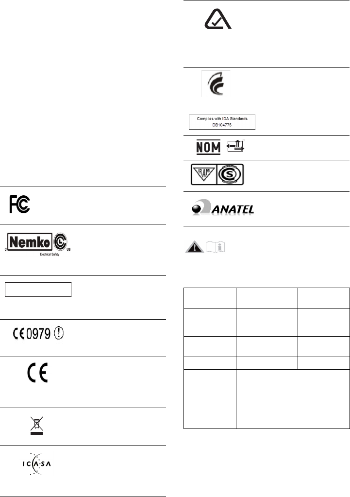 UL 60950-1, 2nd ed., CSA 22.2 No. 60950-1-07 and IEC/