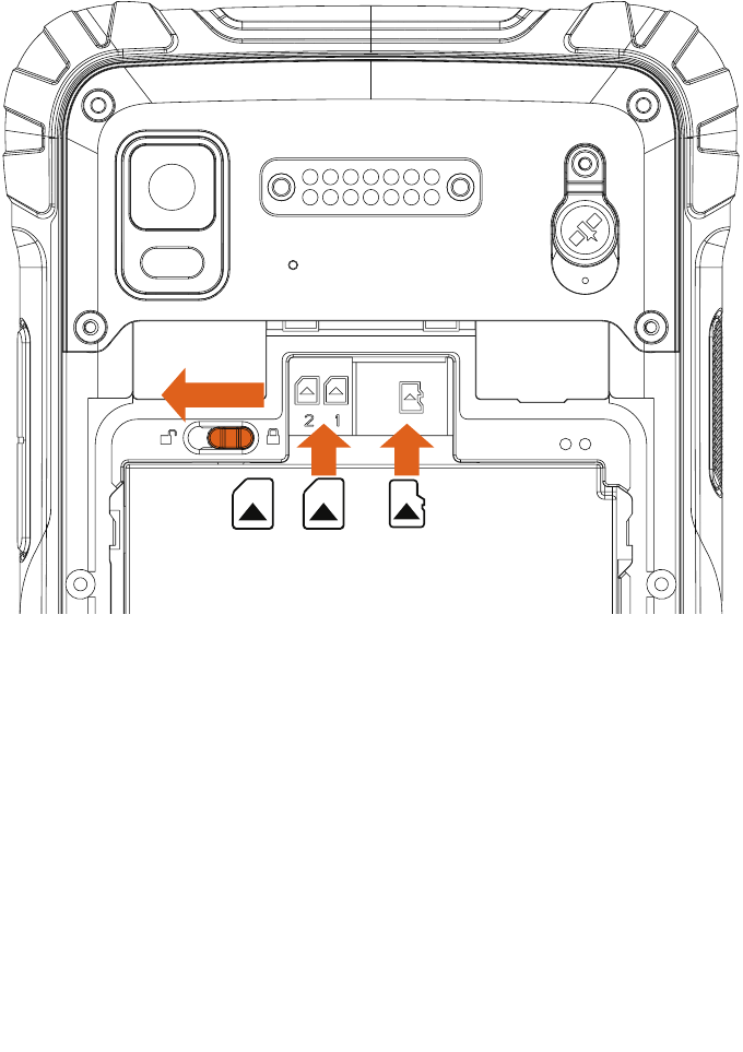 lock to the open position, and remove the battery cover. Install the SIM card and MicroSD