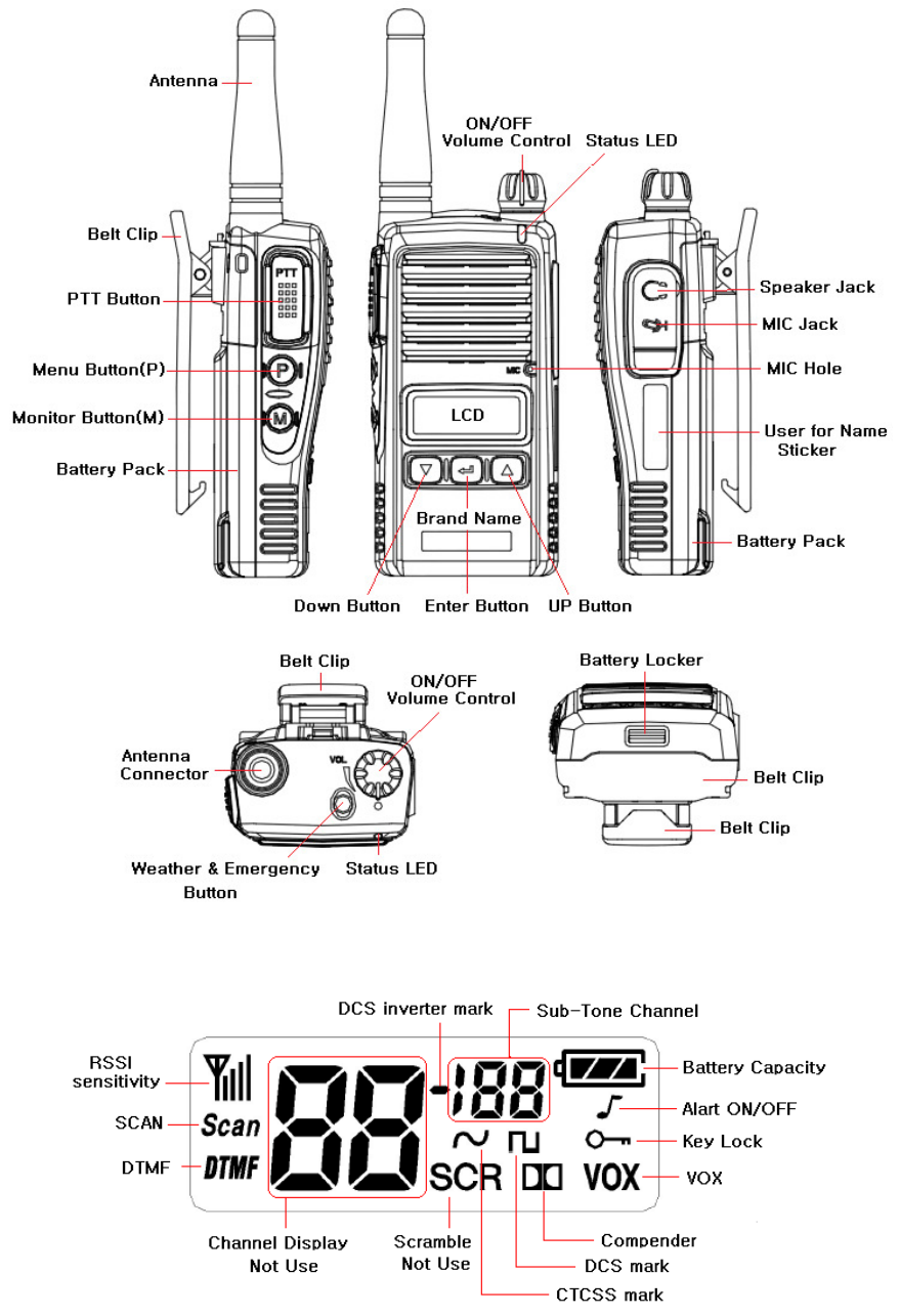 1) The radio of XV-100A series receives power from high-performance Li-ion battery