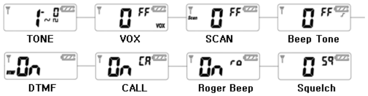 Press Menu (P) button for more than 1 second and the radio will enter into function setting mode.