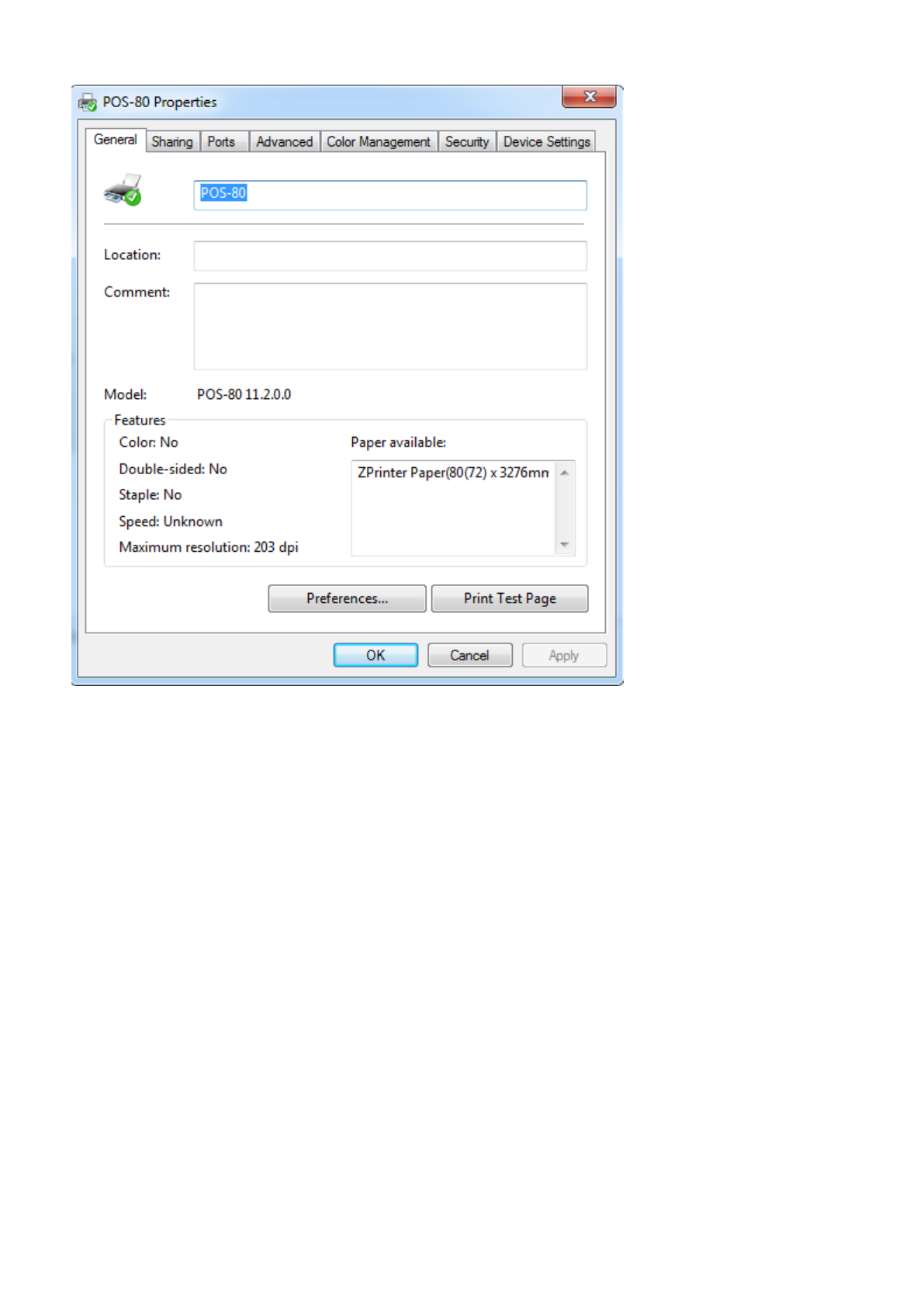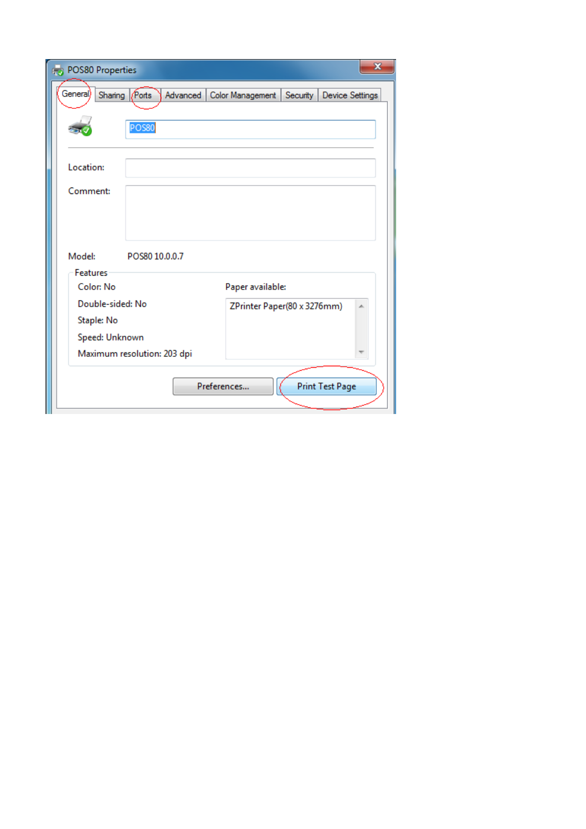 3. Return to the "General" tab, click "Print Test Page" as shown below: