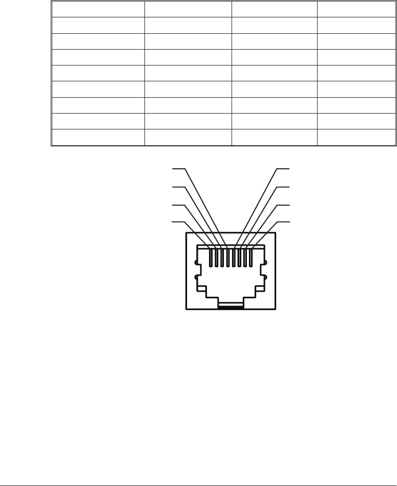 This interface uses an RJ-45 straight-through cable type. The table below