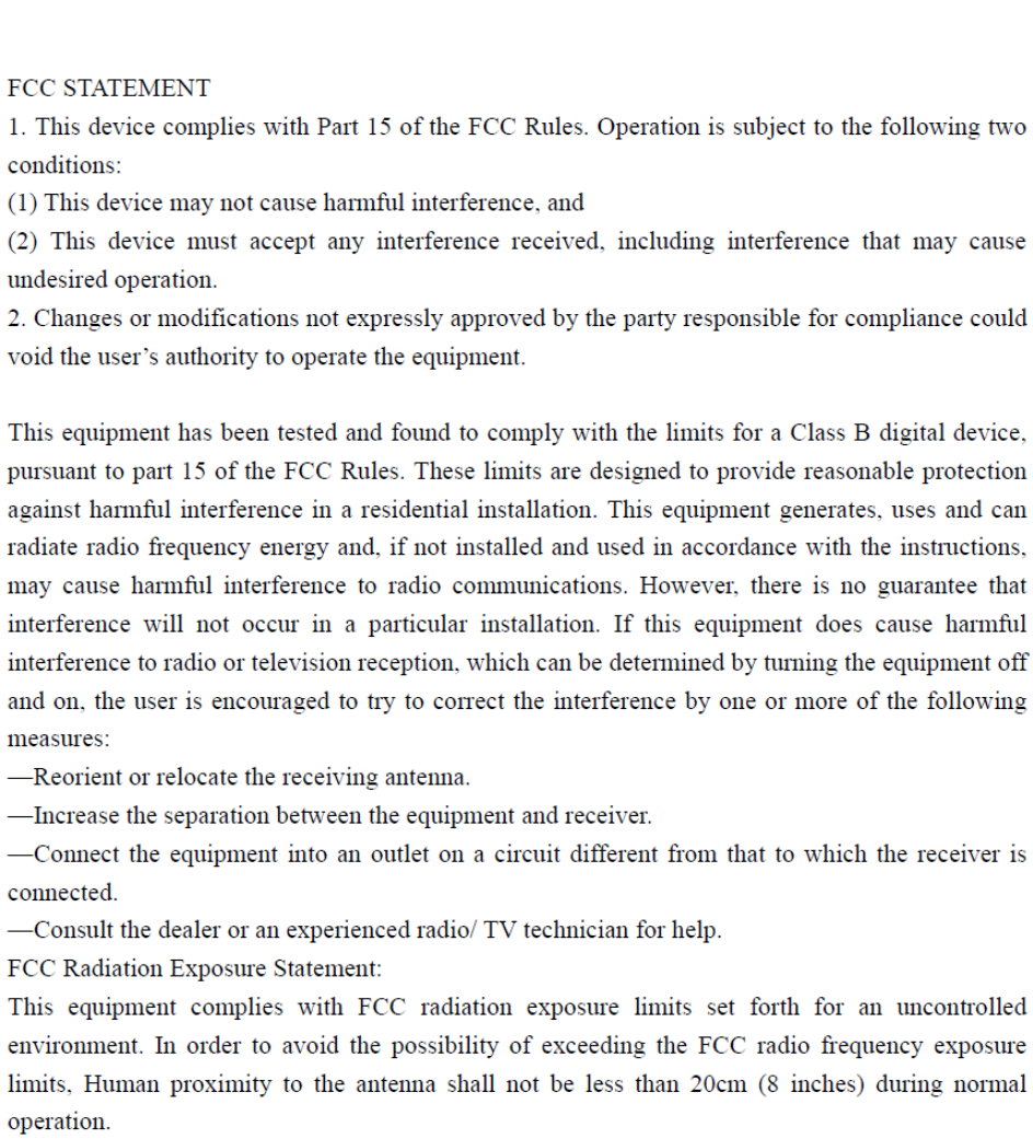 (1) This device may not cause harmful interference, and