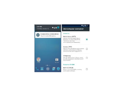displayed in the sliding window. Select [USB connected] and touch [Turn on USB storage] to
