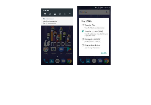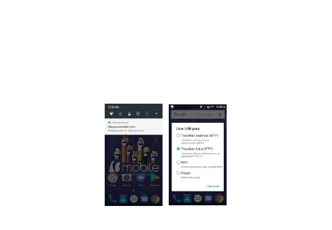 displayed in the sliding window. Select [USB connected] and touch [Turn on USB storage] to