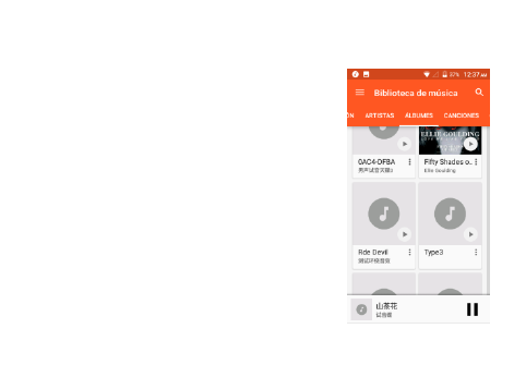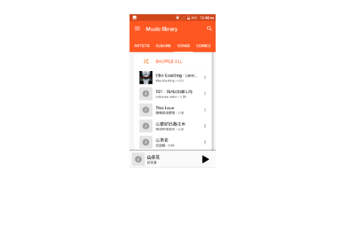 Songs that you saved in the memory card or phone storage can be played on this app.