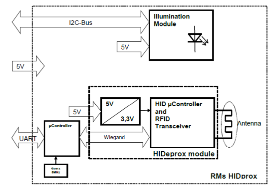 The RMs HIDprox is a RFID Reader/Writer with serial communication interface and