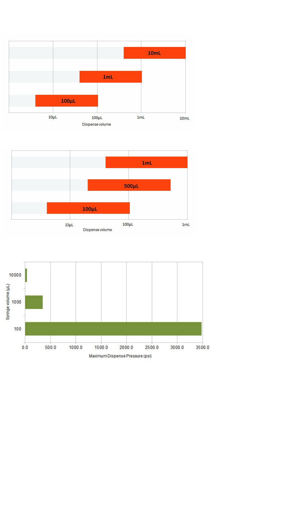 Positive displacement syringe based liquid handling (not pipette) leading to accurate control of volume while dispensing.