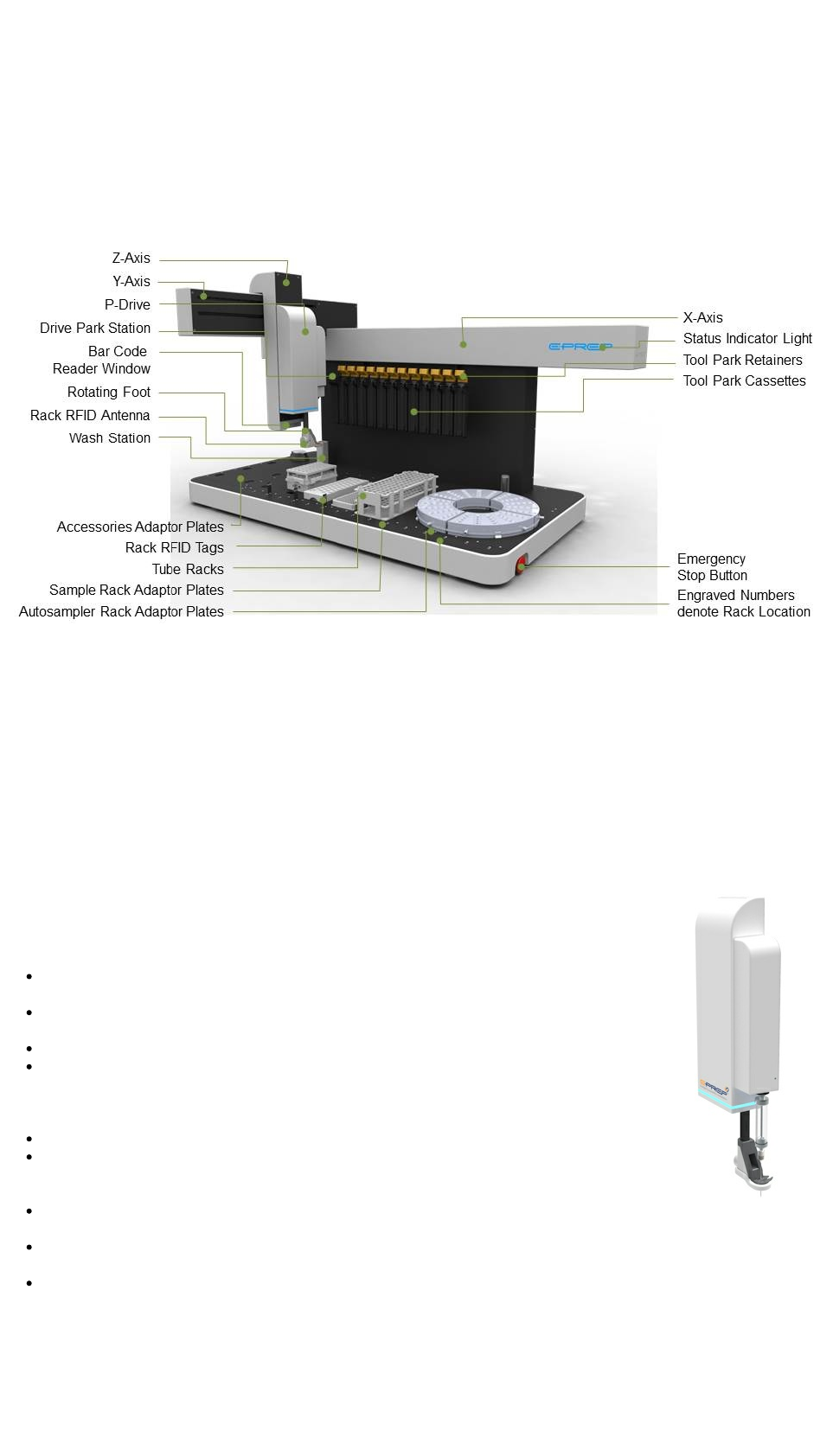 Only approved accessories and consumables can be used with the instrument. Eprep assumes no liability for