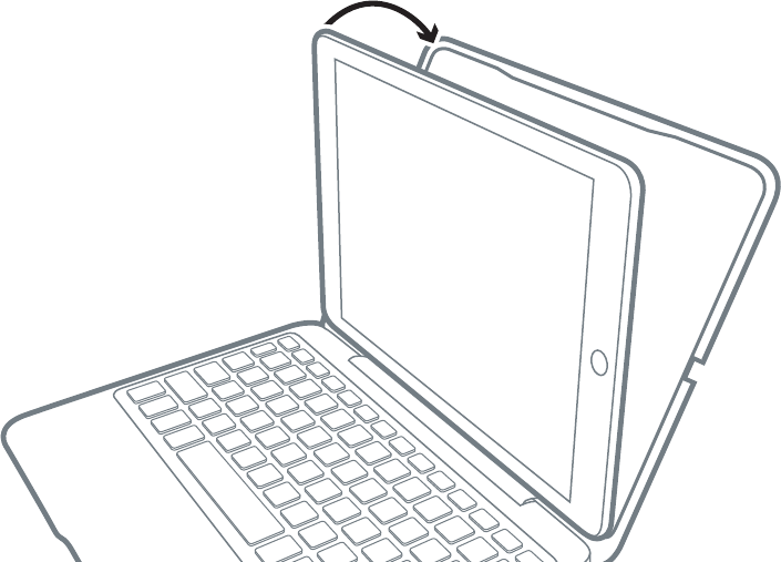 • Press your iPad into the top edge of the Keyboard Case and it will snap in